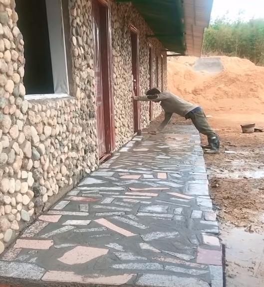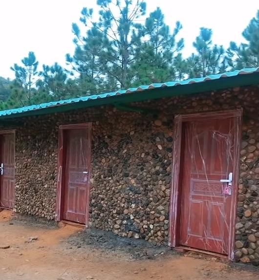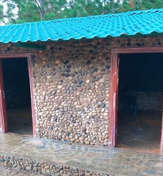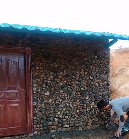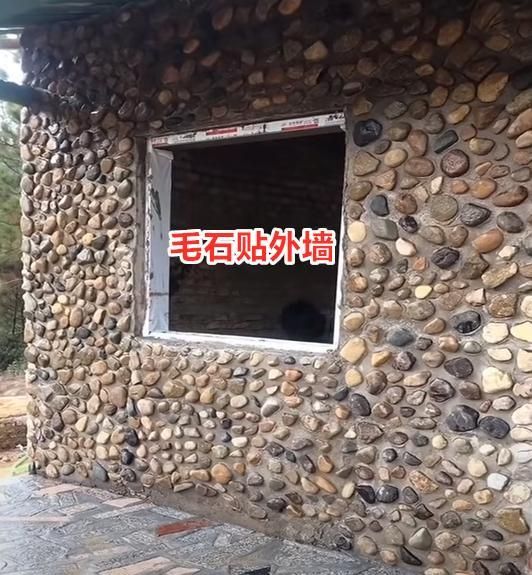 在農村蓋紅磚平房,用一堆毛石塊鋪滿外墻,比瓷磚真石漆結實耐用